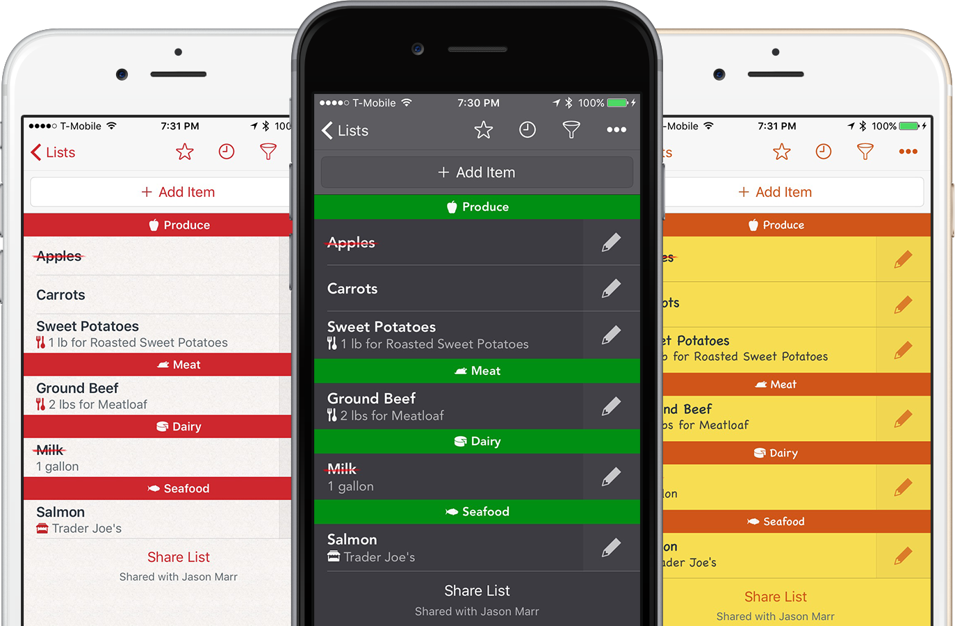 Choose from a variety of premium themes to make each list stand out, or create your own custom themes from a selection of fonts, textures, and colors.