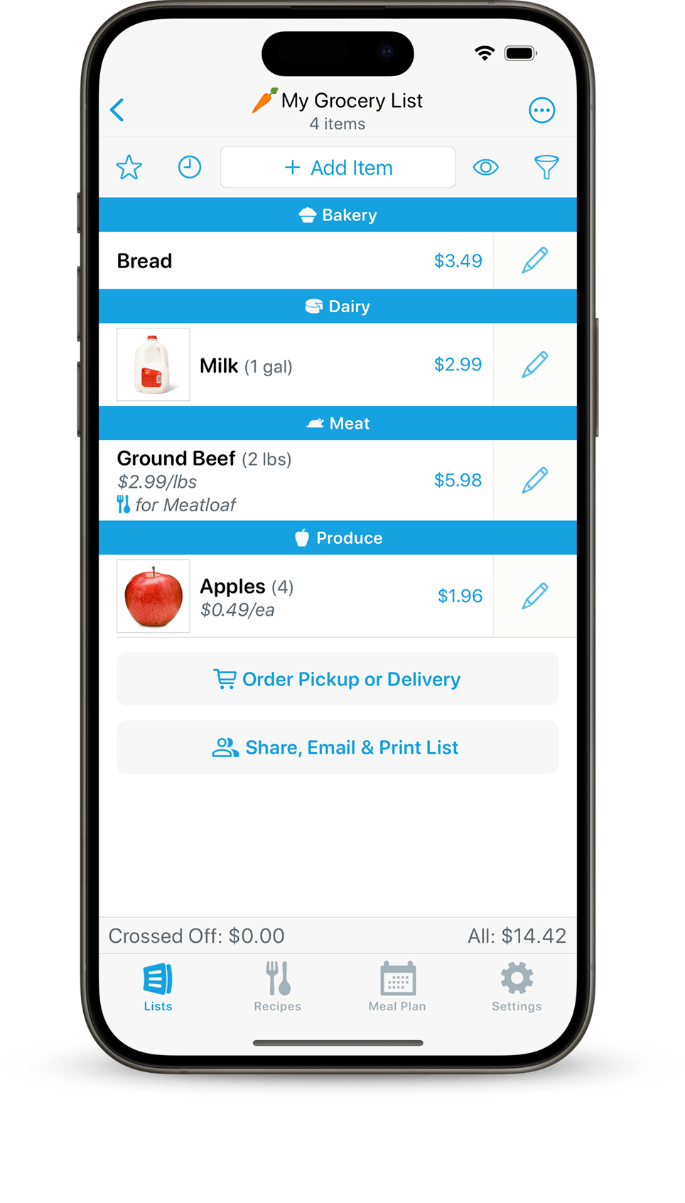 As you enter prices for items, AnyList displays a running total so you can see how much you’re spending.