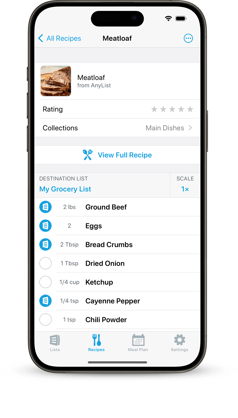 Search for recipes on the web, and import them directly into AnyList. Works with popular recipe websites and blogs like Allrecipes, Food Network, Martha Stewart, and more.