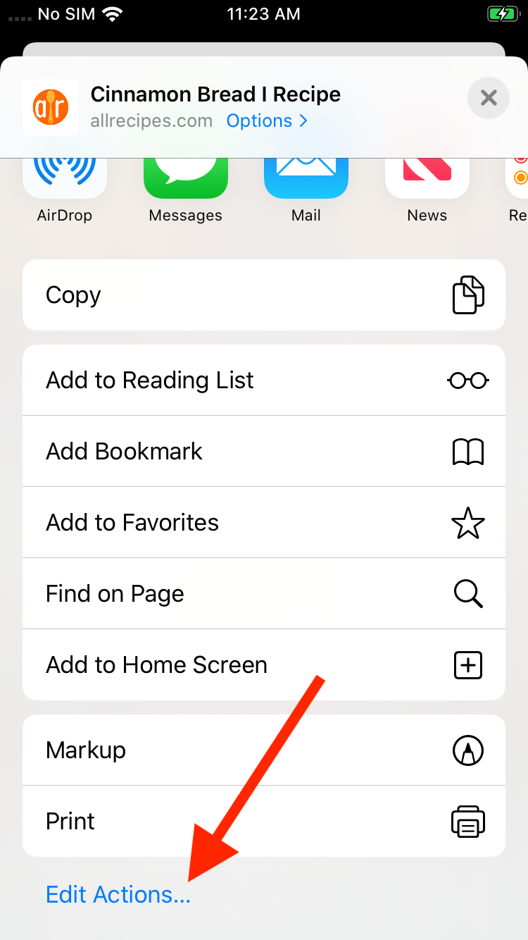 Scroll to the bottom of the share sheet, then select Edit Actions…